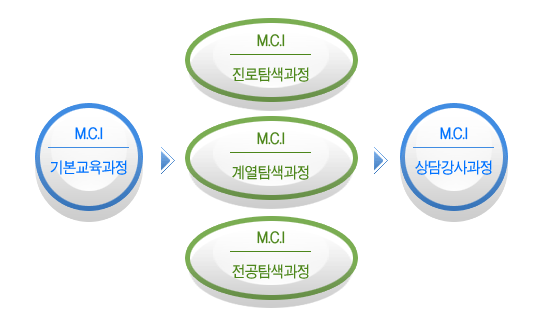 MCIÀü¹®±³À°°úÁ¤Àº º» ¿¬±¸¼Ò¿¡¼ ÁÖ°üÇÏ´Â ±³À°À¸·Î½á ±âº», ½ÉÈ, »ó´ã°»ç°úÁ¤À¸·Î ±¸¼ºµÇ¾î ÀÖÀ¸¸ç, º» ±³À°À» ÅëÇÏ¿© "MCIÁø·Î/°è¿/Àü°øÅ½»ö°Ë»ç"Ȱ¿ëÇÑ °¢ Á¾ ÇÁ·Î±×·¥À» ÁøÇàÇÒ ¼ö ÀÖ´Â ÁöµµÀÚ¸¦ ¾ç¼ºÇÏ´Â ±³À°°úÁ¤ÀÔ´Ï´Ù.